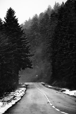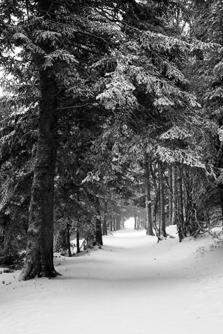 Route bordée d’une foret enneigée