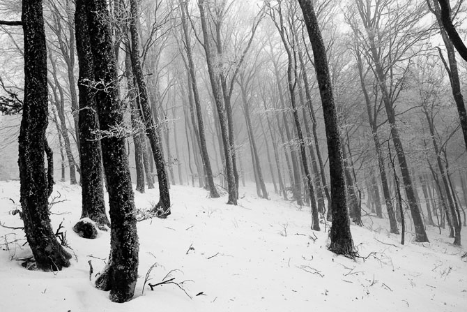 Arbres dans foret enneigée