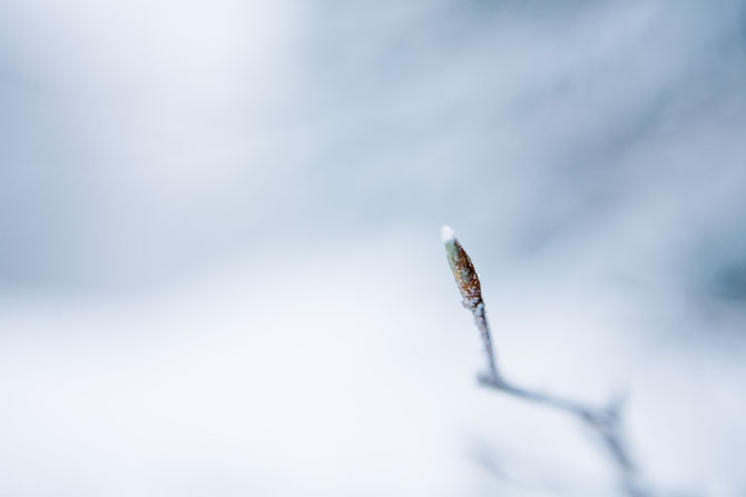 Branche d’arbre et bourgeon gelés