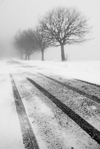 Route en hiver avec arbres en fond