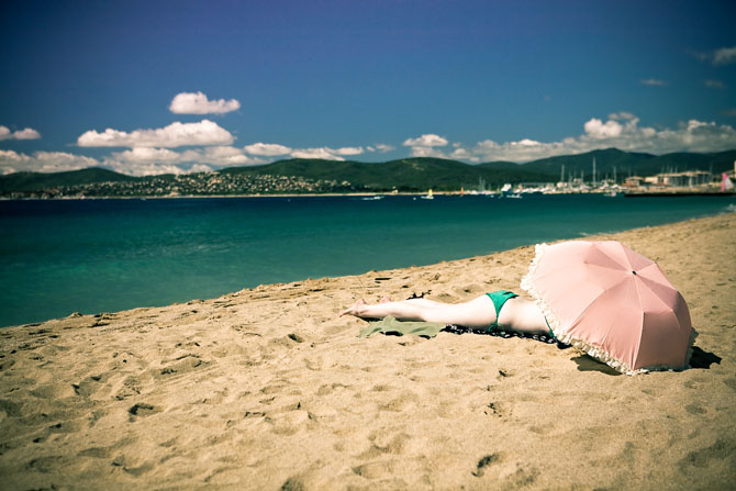 Femme bronzant sur la plage