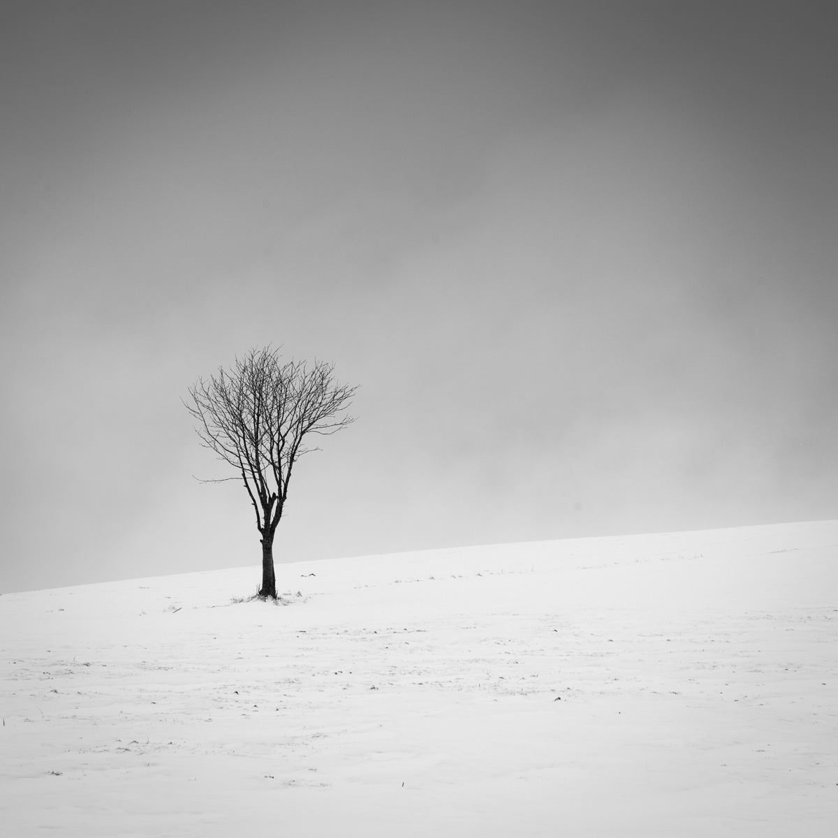 Arbre seul dans paysage enneigé